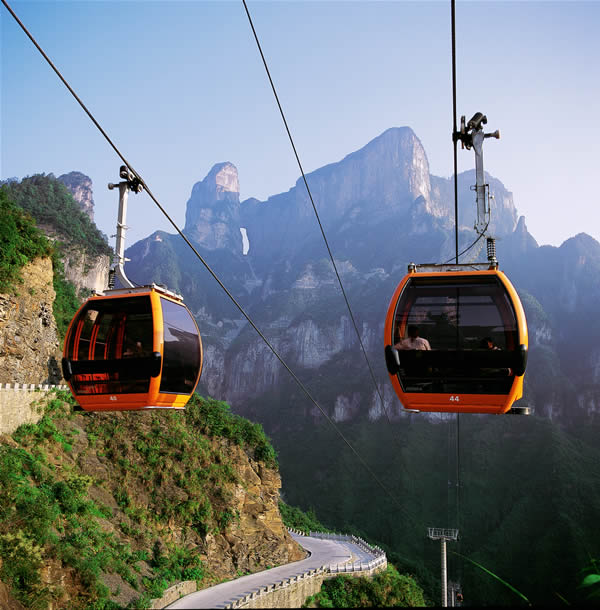 天門山國家森林公園距張家界市區(qū)南側(cè)約8公里,山頂南北寬1.93公里,東西長1.96公里,面積2.2平方公里,海拔1518.6,這里以發(fā)育較齊全的巖溶地貌區(qū)別于武陵源的砂巖峰林景觀,是一座四周絕壁的臺(tái)形孤山。