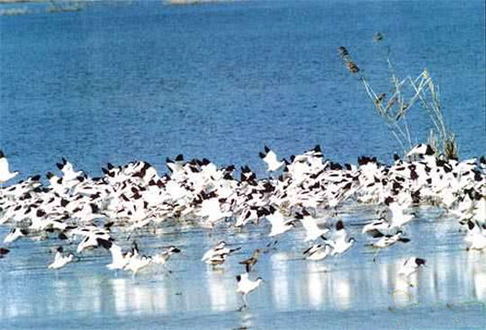 東洞庭湖是一個大湖泊型寬闊河道,它承納長江中上游和湖南的湘、資、沅、澧4條江河水量。湖泊的周圍是廣闊的沼澤和平原。 東洞庭湖是洞庭湖湖系中最大的湖泊,年平均過湖水量達3126億立方米。常年湖容量178億立方米,水深4-22m,最大水位落差為17。76m,ph6.8-8.6。它的地貌呈溝港縱橫的濕地景觀。土壤為湖沼土和河沼土。年平均氣溫為17℃,湖水丹頂鶴年平均溫度17.5℃,總降水量1200-1330mm,無霜期258-275天 該湖有豐富的沉水、浮水和挺水植物。記錄到131種水生植物,隸屬40科,75屬。常見的沉水植物包括苔草、黑藻、浮水植物有蓮、芡和浮萍;挺水植物有水燭和蘆葦?shù)取竦刂車堑咎锖推渌r(nóng)作物。