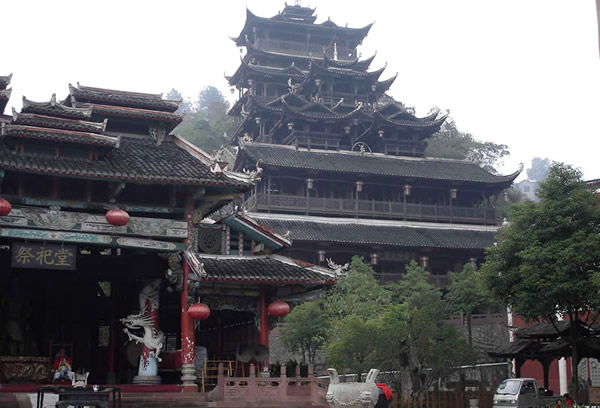 土司制度初建于五代十國(guó)時(shí)期,到了明朝己非常成熟了,土司王有無(wú)上的權(quán)威,在湘西有三大土司王分別是桑植土司向氏、永順土司王彭氏、慈利土司王張氏,其中又以永順溪州土司彭氏實(shí)力最強(qiáng)。其它土司王都為自己修建一座土司城,唯有彭氏分別在永定、永順修建了二座土司城。在永定的土司城內(nèi),彭氏為顯示其地位,修建了湘西最高的一座高達(dá) 48米,共12層的吊腳樓,整棟樓竟無(wú)一根鐵釘,堪稱(chēng)土家吊腳樓建筑史上的奇跡,此樓于2002年9月被評(píng)為最高吊腳樓,榮獲世界吉尼斯之最,與此同時(shí)土司城內(nèi)舉辦一千人參加表演的毛古斯舞蹈活動(dòng)獲得圓滿(mǎn)成功,同時(shí)獲得世界吉尼斯之最。進(jìn)入土司城,首先看到土司城迎賓儀式,土家漢子迎賓鼓,吹牛角、放沖,土家姑娘攔門(mén)歌,敬攔門(mén)酒,進(jìn)入城內(nèi),在祭祀堂前舉行百人土家大祭祖活動(dòng),男女老少唱擺手歌、跳擺手舞,登世界最高的吊腳樓九重天,參觀土家族千百年來(lái)文化展示。到土家山寨,聽(tīng)土家歌,賞土家族最有代表風(fēng)俗哭嫁,三棒鼓,花燈等民俗表演。