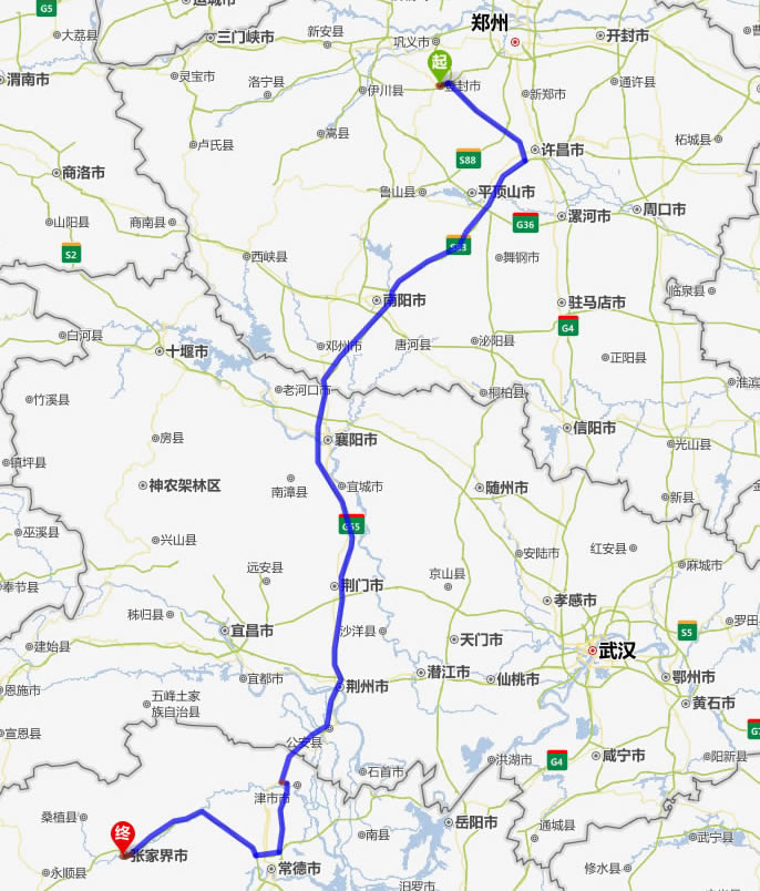 登封去張家界自駕車(chē)自助游線路圖全程高速):