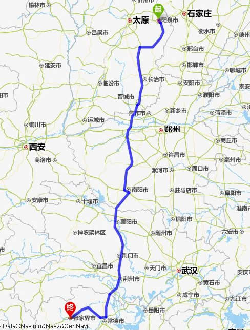 陽(yáng)泉去張家界自駕車自助游線路圖全程高速):