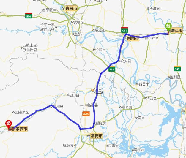 現(xiàn)在位置:張家界旅行社->交通指南->自駕車路線 -> 潛江到張家界旅游自駕車線路-潛江市去張家界自己開車要多長時(shí)間,有多少公里