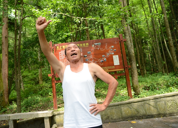 二是老人有個強健硬朗的身板。十多年前,趙如秋查出患有高血壓和腎結(jié)石,他就堅持每天在景區(qū)爬山鍛煉身體,結(jié)果還真的有效,不僅腎結(jié)石消除了,高血壓有所緩解,身體也結(jié)實得很。如今趙如秋老人雖然68了,但說話中氣十足,走路健步如飛,還能挑上150斤擔子徒步登上鷂子寨、黃石寨,沿路還能唱山歌。